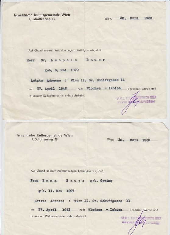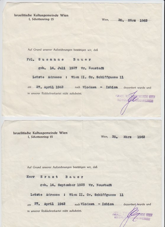 Geboren 1921 in Wiener Neustadt als Irma Bauer, Tochter des Rechtsanwalts Leopold Bauer und seiner Frau Emma. Sie hatte zwei jüngere Geschwister und besuchte das Gymnasium in Wiener Neustadt. 1938 konnte sie im Rahmen der Jugend-Alijah – eines Projekts der Jewish Agency zur Auswanderung Jugendlicher aus Nazi-Deutschland – nach Palästina fliehen. Ihren beiden Geschwistern und ihren Eltern gelang die Flucht nicht. Anfangs konnte sie mit ihrer Familie noch Kontakt halten. Dass ihre Familie 1942 von den Nationalsozialisten ermordet wurde, erfuhr sie erst nach dem Krieg. Batya zog in den Kibbuz Sha’ar HaGolan im Norden Israels, arbeitete dort als Erzieherin im Kindergarten, heiratete Yosef Netzer und brachte zwei Kinder zur Welt. Sie starb im Mai 2010.